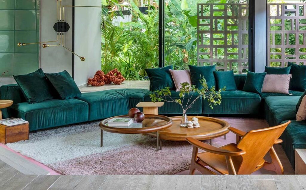 - Lujosa y Sofisticada: Combina suelos de madera oscura con alfombras de pelo denso y lujoso en tonos profundos como el carbón, el azul marino, el burdeos oscuro o el verde botella. Materiales como la lana o la seda artificial realzan esta sensación de opulencia.