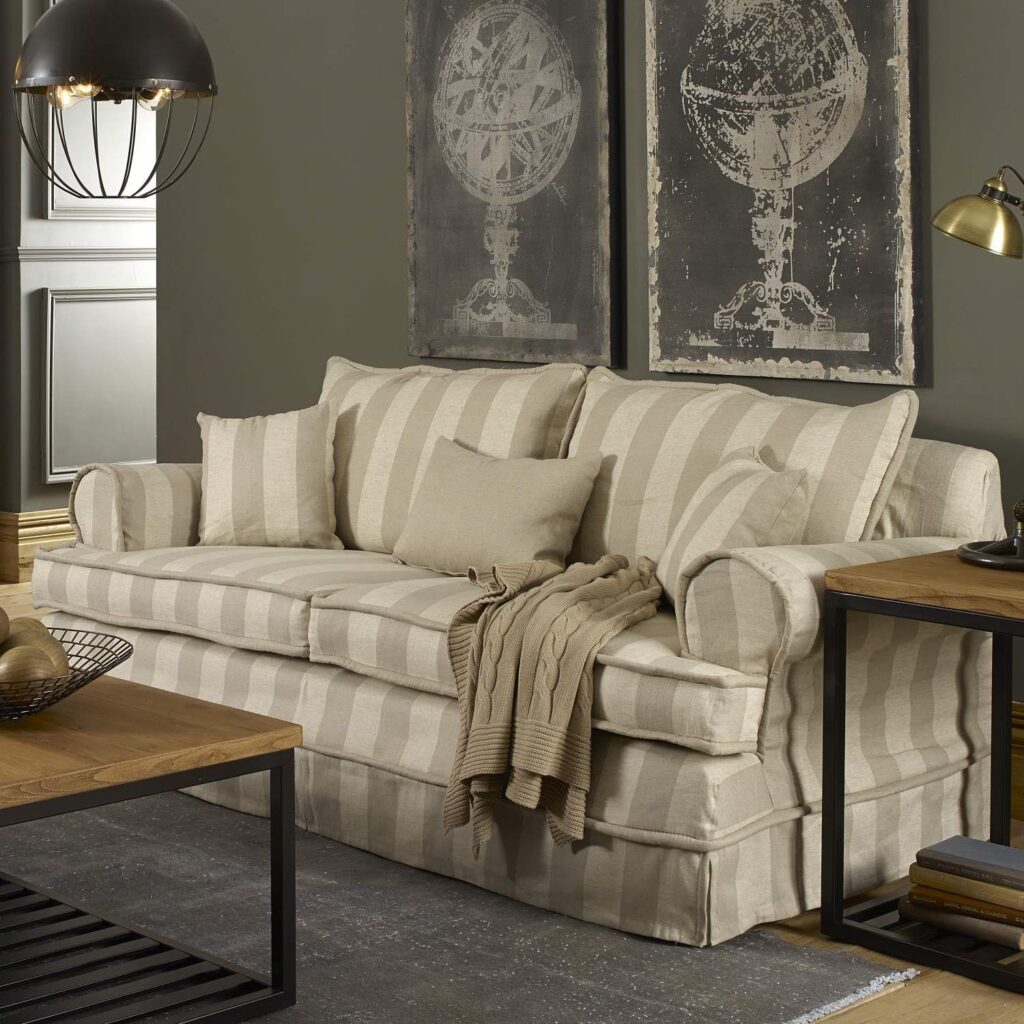 - Tapicería (Covering): Es la capa exterior visible del sofá. La tapicería puede ser de tela (como lino, pana, algodón, poliéster, microfibra) o de cuero (natural o sintético). La elección de la tapicería influye en la estética, la facilidad de limpieza, la resistencia al desgaste y el precio del sofá.