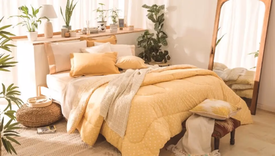 - Cubrecamas y Quilts: Opciones más ligeras que los acolchados, perfectas para climas templados o como capa decorativa. Aportan textura y color a la cama.