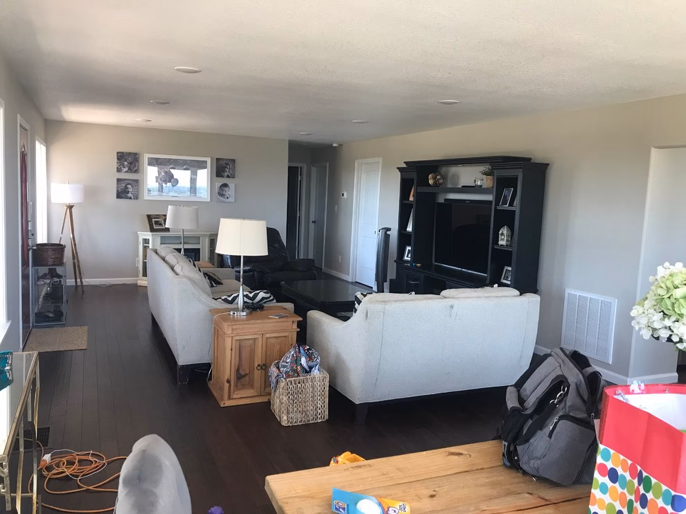 Una viga expuesta sobre un sofá puede crear una energía opresiva, simbólicamente "pesando" sobre las personas sentadas debajo. Si no puedes reorganizar los muebles, intenta minimizar el efecto pintando la viga del mismo color que el techo para que sea menos visible. También puedes colocar objetos debajo de la viga que "empujen" hacia arriba, como plantas altas o lámparas de pie, para contrarrestar la energía descendente.