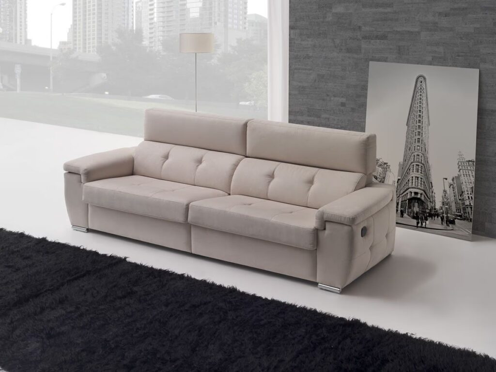 - Cojines Fijos o Respaldo Corrido: Un asiento fijo o un respaldo que es una sola pieza unida a la estructura del sofá suele requerir menos costuras y cortes, lo que puede optimizar el uso de la tela y reducir el desperdicio.
