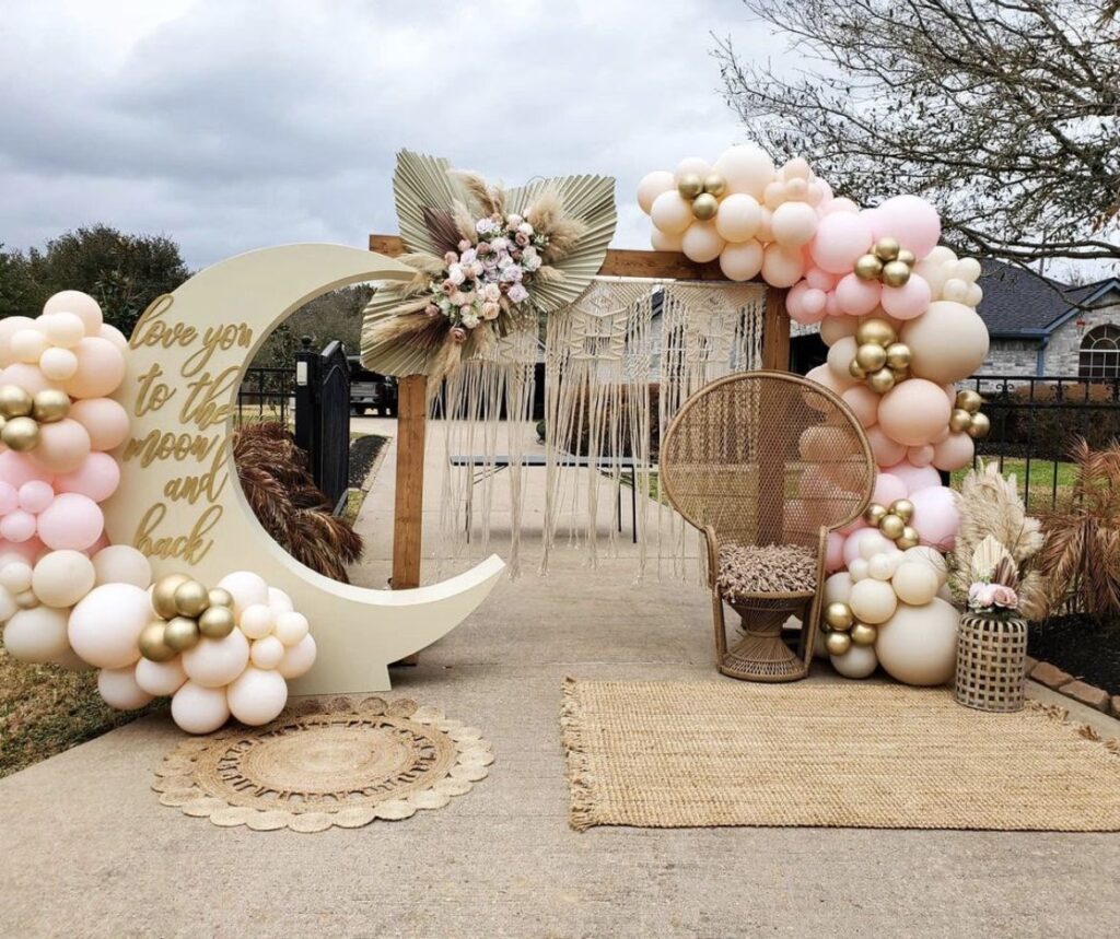 Montar un rincón de fotos DIY es una idea de decoración de cumpleaños divertida e interactiva que permite a los invitados capturar momentos memorables. Captura la alegría y la emoción de tu celebración con un rincón de fotos hecho por ti. Prepara una mesa o una caja con una variedad de accesorios como sombreros, máscaras, letreros y otros complementos temáticos. Proporciona una variedad de accesorios como sombreros divertidos, gafas extravagantes, bigotes postizos y letreros con mensajes de cumpleaños para animar a los invitados a posar de forma divertida y crear recuerdos duraderos. Puedes usar el fondo de globos o crear uno específico con cortinas brillantes o telas.