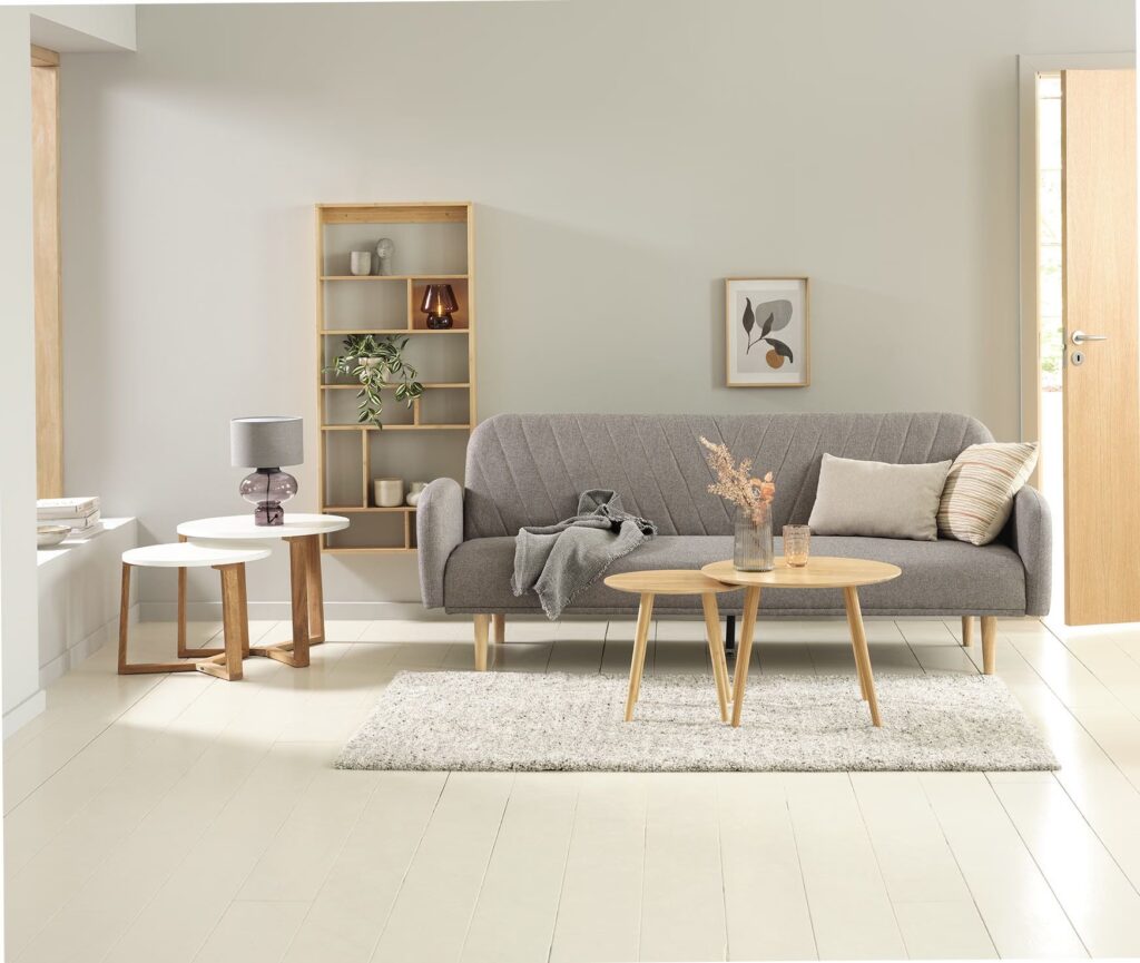 Abraza la simplicidad, funcionalidad y luminosidad de la estética escandinava con una mezcla de gris claro y marrón miel. Esta combinación limpia, aireada y luminosa es ideal para espacios abiertos y luminosos, como salones minimalistas o cocinas abiertas al salón, aportando un toque de calidez inspirada en la naturaleza. Un sofá de diseño sencillo y funcional, con patas de madera a la vista, en un tono gris claro, quizás de algodón o lino, sería perfecto para esta estética. Combínalo con muebles de madera de tono miel, como una mesa de centro baja y redonda, estanterías abiertas de diseño simple o sillas auxiliares con estructuras de madera clara. Las paredes blancas o en un gris muy claro maximizan la luz natural y la sensación de amplitud. Si buscas una combinación de gris y marrón que se sienta fresca, luminosa y acogedora a la vez, con un enfoque en la funcionalidad y los materiales naturales, deberías probar esta. Es perfecta para crear un ambiente tranquilo, ordenado y lleno de hygge.