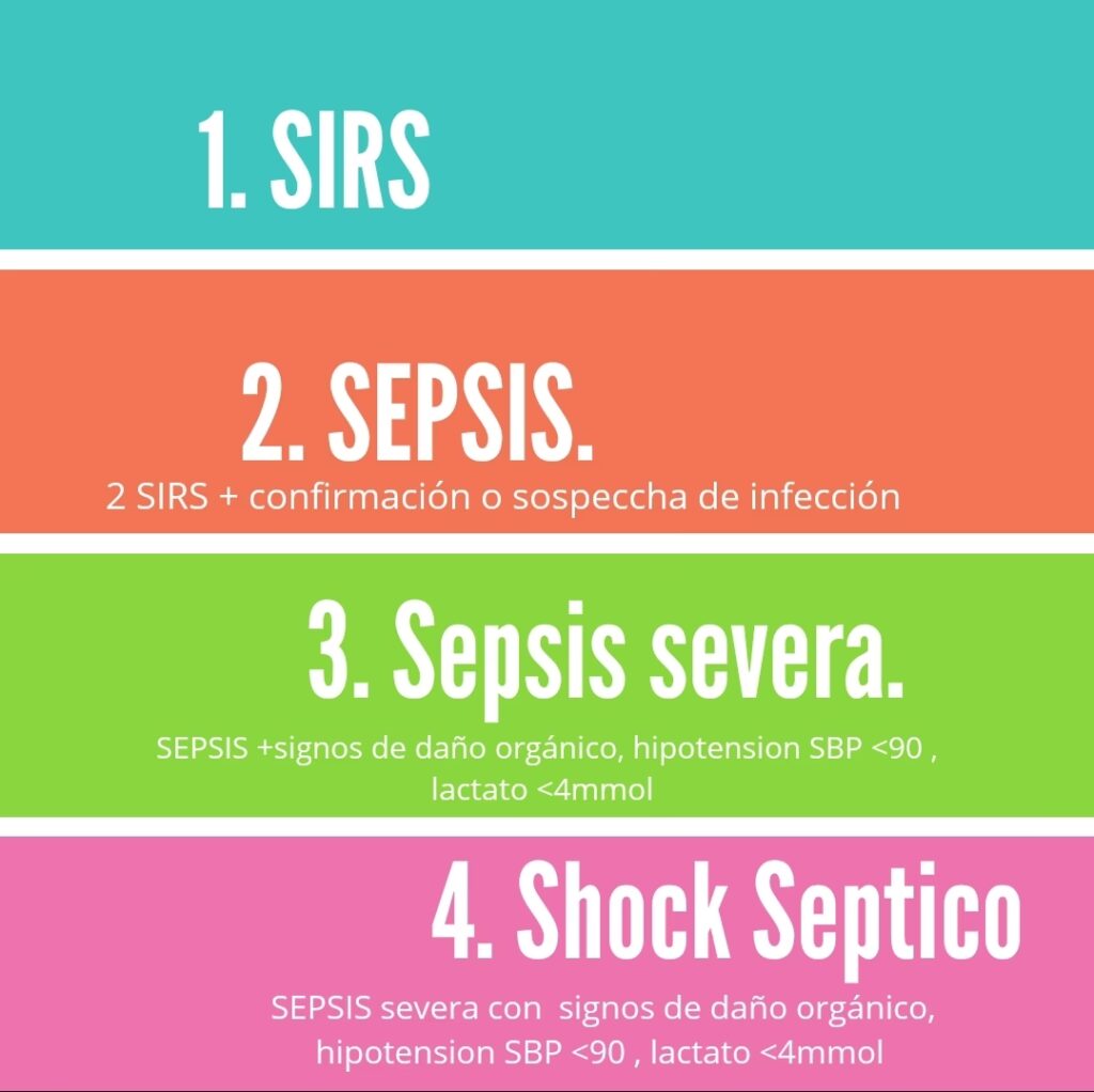 | Sepsis | SIRS resultante de un proceso infeccioso confirmado. Frecuentemente asociado a disfunción orgánica. | Diagnóstico de una condición grave desencadenada por infección. | - | - |