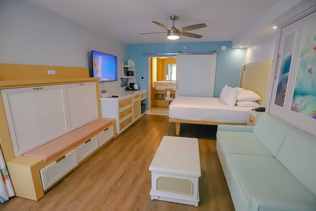 La mayoría de las habitaciones estándar en Disney's Beach Club Resort tienen un tamaño de 380 pies cuadrados.
