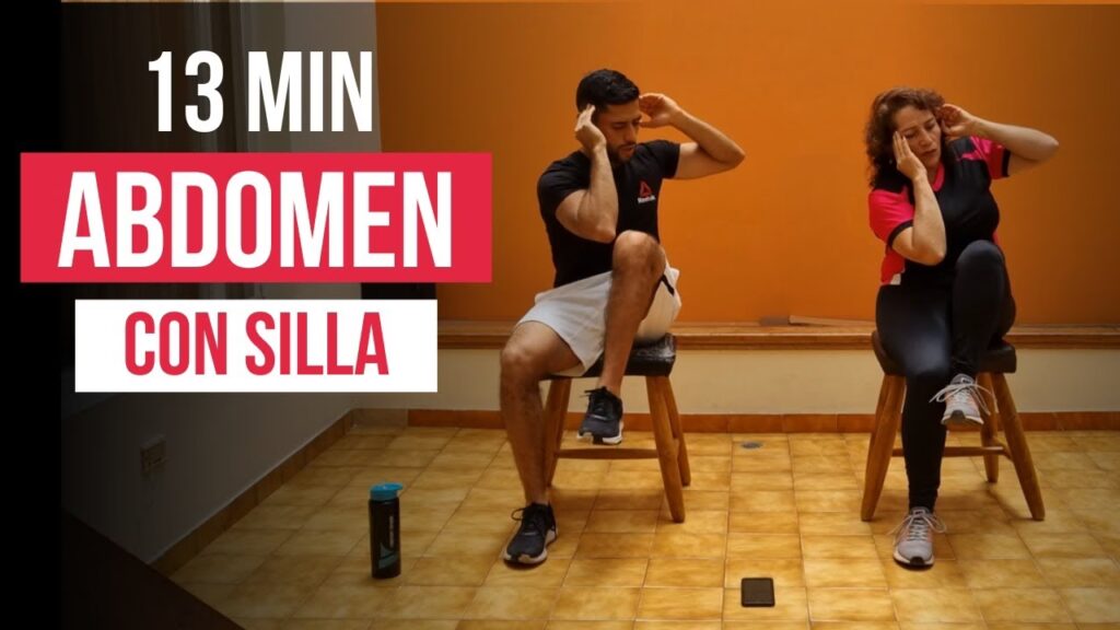 - Sitting Crunches: Sentado al borde de la silla, manos detrás de la cabeza, espalda recta. Inclínate ligeramente hacia atrás y luego lleva el pecho hacia las rodillas, contrayendo el abdomen. Realiza 15 repeticiones para 3 series.
