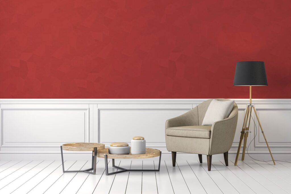 - La Tonalidad del Rojo: No todos los rojos son iguales. Un rojo cereza brillante tendrá un impacto diferente a un borgoña profundo o un rojo ladrillo. Los rojos más apagados o terrosos combinan bien con tonos más cálidos y naturales, mientras que los rojos brillantes aceptan mejor los contrastes limpios como el blanco y el negro.