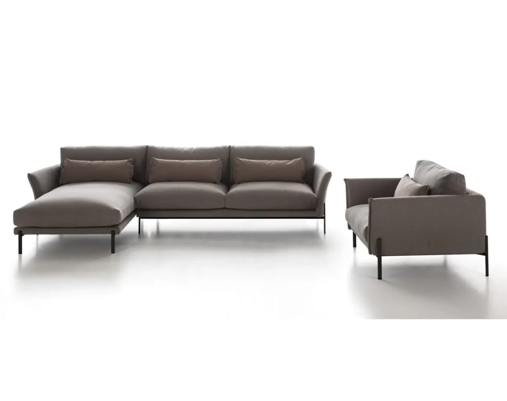 Uno de los desarrollos más importantes de este período fue la introducción de los sofás modulares. Esta innovación permitió a los consumidores personalizar el tamaño y la configuración de su sofá combinando diferentes elementos o «módulos». De repente, el sofá ya no estaba limitado a tamaños estándar de 2 o 3 plazas; podía adaptarse a cualquier espacio, grande o pequeño, y a cualquier necesidad, creando sofás de 4, 5, 6 o más plazas, rinconeras, chaiselongues y otras configuraciones únicas. La modularidad democratizó el diseño de sofás y lo hizo accesible a una gama mucho más amplia de estilos de vida y tamaños de hogares.