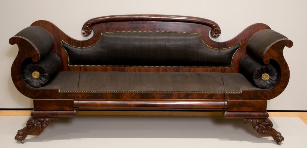 Muebles ingleses de los siglos XVIII y XIX, a menudo construidos con maderas duraderas como el nogal y la caoba, utilizaban tradicionalmente materiales orgánicos para el acolchado. La crin de caballo, utilizada en la tapicería antigua hasta el siglo XIX (principalmente como relleno, según algunas fuentes), es una marca de calidad. Su resistencia, durabilidad y coste superior en comparación con alternativas como el heno la convertían en la elección predilecta para el mobiliario de gama alta.