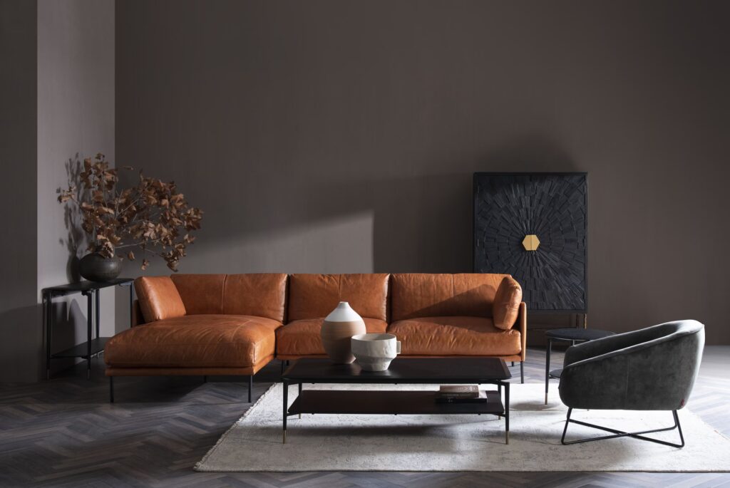 - Cobre y Bronce: Estos metales tienen subtonos rojizos que complementan los matices anaranjados o quemados del ocre. Son perfectos para crear un ambiente más industrial chic, rústico o bohemio, añadiendo calidez y textura.