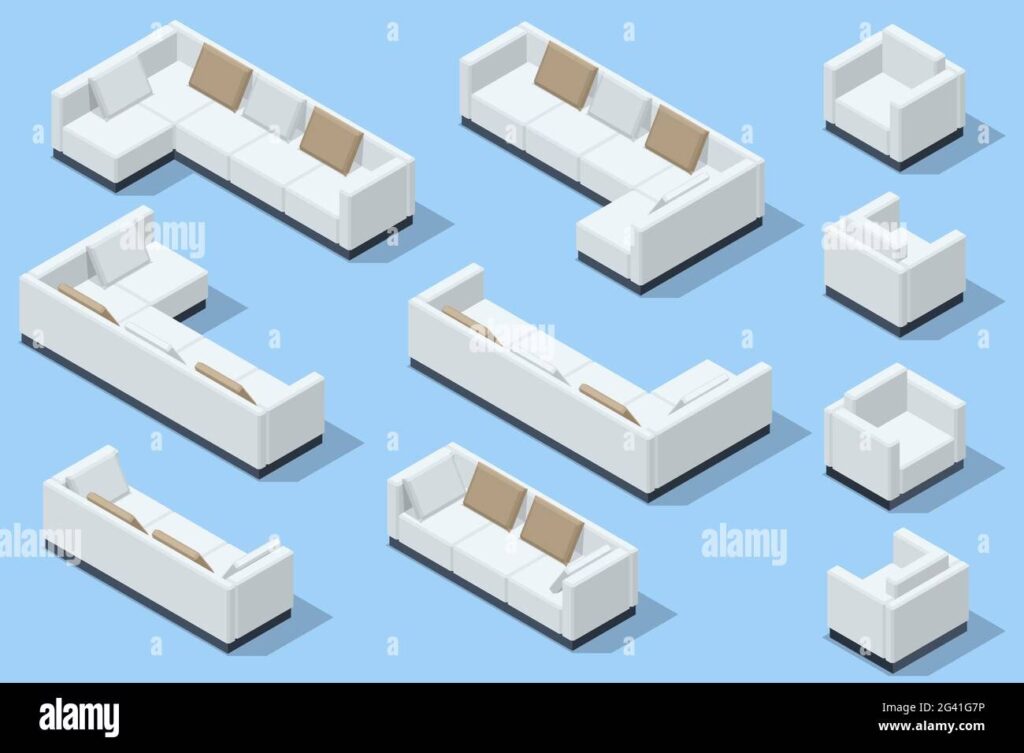 - Sofá Recto: El clásico lineal, disponible en varios tamaños (2, 3 o más plazas, loveseat). Es versátil y se adapta a muchos espacios.