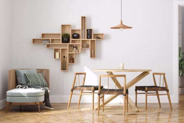 Los materiales naturales como la madera y las fibras vegetales (mimbre, ratán) son tendencia por su calidez y textura. Los metales con acabados como el níquel satinado, el cromo brillante o el bronce siguen siendo populares, adaptándose a estilos modernos, contemporáneos y de transición. El vidrio (transparente, soplado, ahumado) y el metal (formas geométricas, acabados industriales) también son muy utilizados.