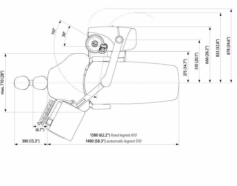 Además de las dimensiones generales del área donde se ubicará el equipo, debes considerar el espacio circundante. Es fundamental asegurarse de que haya suficiente espacio libre alrededor de la unidad una vez instalada. Se recomienda contar con un espacio libre de pared u objetos de al menos 2.35 metros a cada lado del equipo. Este espacio lateral es crucial para permitir el movimiento del personal dental (odontólogo, auxiliar), el acceso del paciente al sillón, y para realizar tareas de mantenimiento o reparación sin obstrucciones. Un espacio inadecuado puede dificultar las maniobras, comprometer la ergonomía del personal y afectar negativamente la experiencia del paciente.