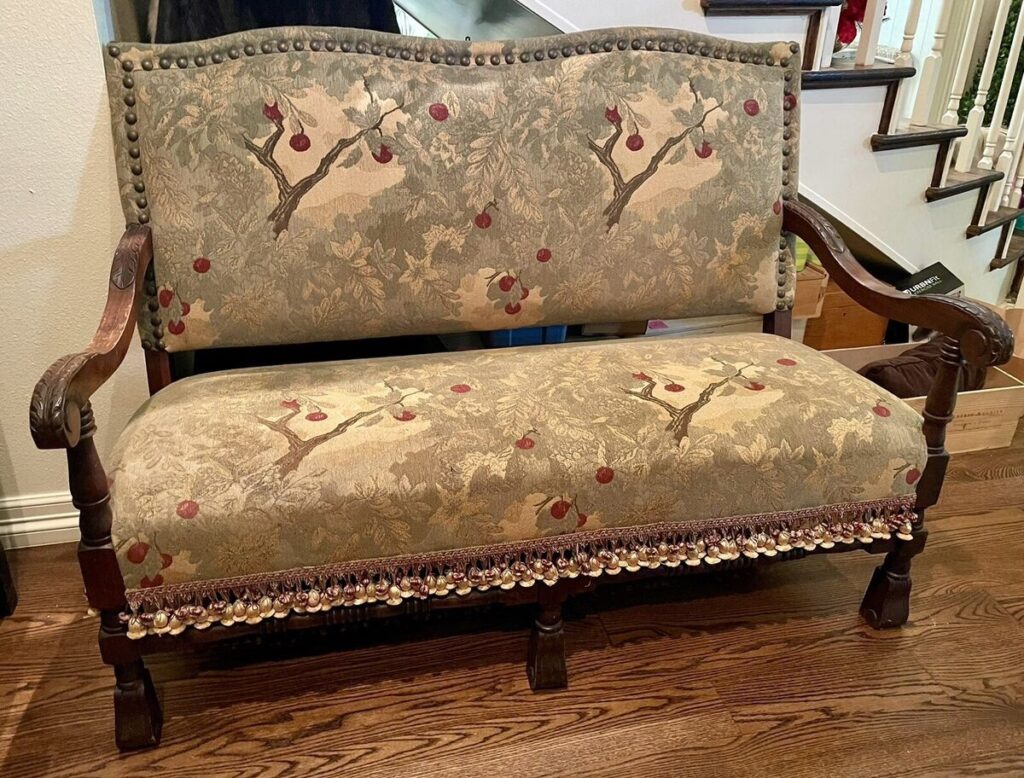 Los tapizados son una seña de identidad fundamental del estilo barroco. Telas ricas y lujosas como el terciopelo, el raso y la seda son las preferidas, siempre en colores intensos y vibrantes como el verde esmeralda, el ocre dorado o el profundo granate. Estos tapizados no solo añaden comodidad a sillas y sillones, sino que también aportan textura y un toque de suntuosidad visual. Las sillas y mesas barrocas suelen presentar patas talladas de forma muy elaborada, a menudo con formas inspiradas en elementos naturales o mitológicos, y los asientos de las sillas son vistosos y acolchados.