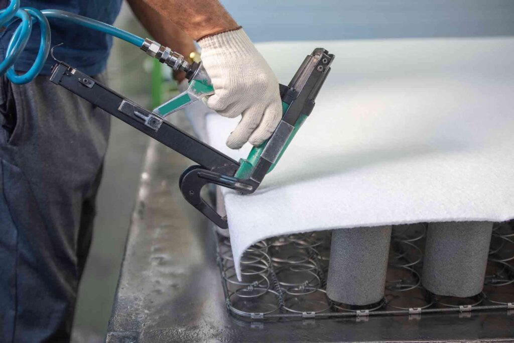 | Muelles Helicoidales (Coil Springs) | Muelles cónicos o bicónicos individuales, a menudo cosidos a una base de cincha y unidos entre sí en la parte superior. | Cinchas de tela o yute, grapas, costuras, a veces alambre entrelazado en la parte superior. | Reparación más compleja, a menudo implica trabajar con cincha y costura. Proporcionan un soporte muy duradero y tradicional. |